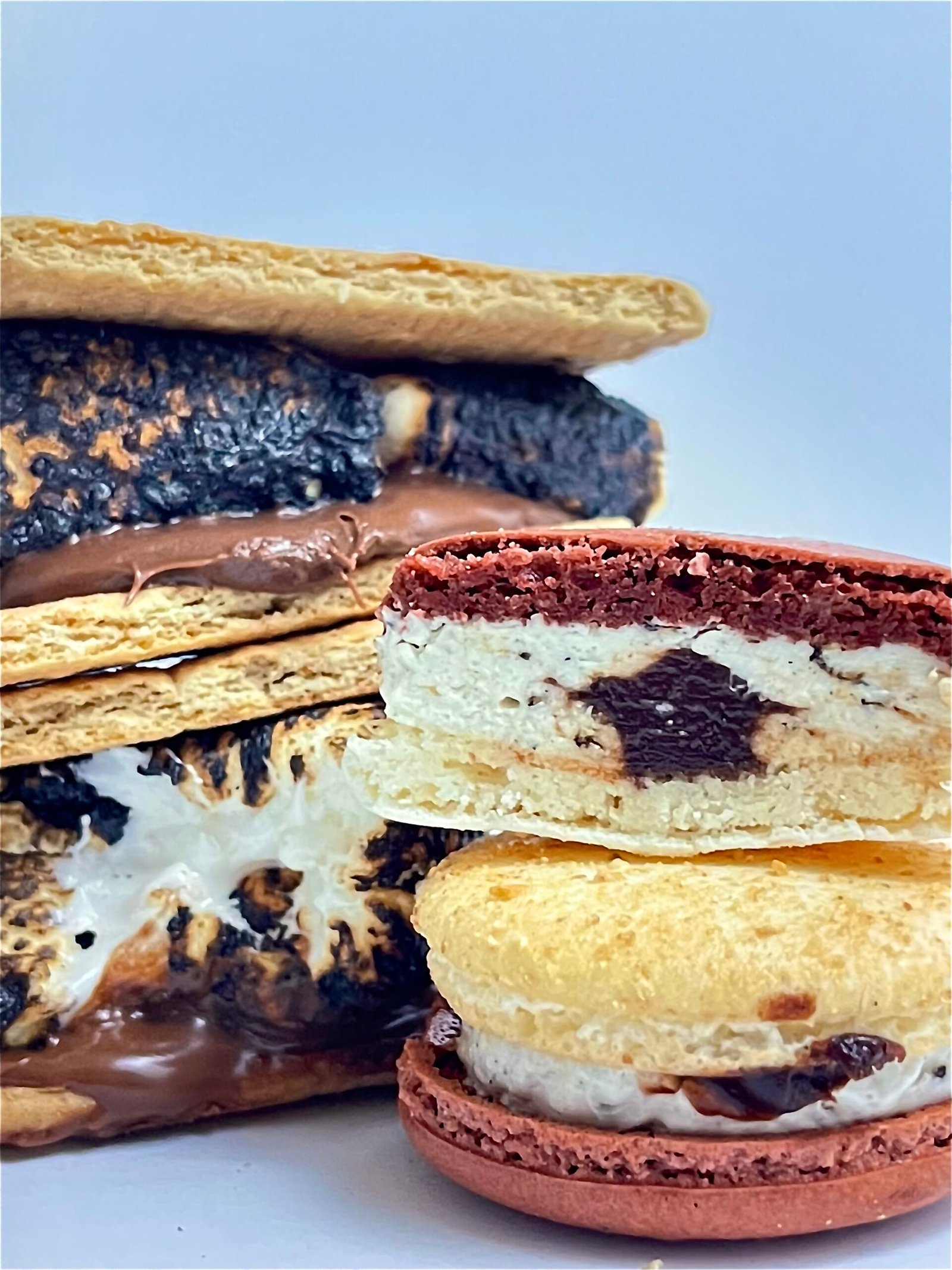 Toasted marshmallow, rich chocolate ganache, and a touch of graham come together in this nostalgic favorite. The S’mores macaron brings all the warmth of a fireside treat—crafted with a crisp outer shell and a melt-in-your-mouth finish.