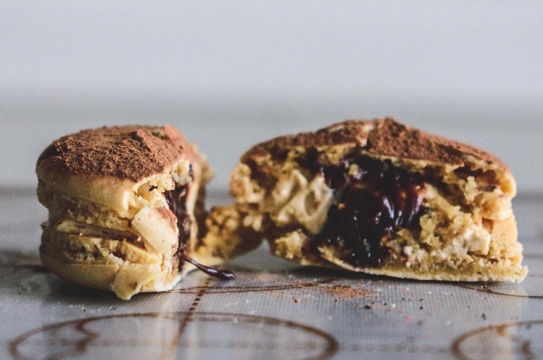 Espresso-soaked richness meets mascarpone cream inside delicate cocoa-dusted shells. Inspired by the iconic dessert, our Tiramisu macaron delivers layered depth, subtle sweetness, and a smooth, lingering finish.
